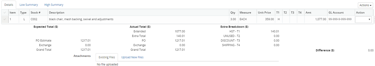 3. Click on the Action drop-down menu beside the corresponding requisition and select Create PO.