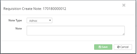 4. If applicable, in the Requisition Create Note dialog box, click on the Note Type drop-down menu to select an option.