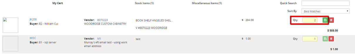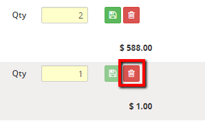 22. If applicable, update the Quantity of any of the items and click on the Save icon.