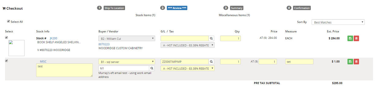 36. If applicable, update any of the following fields for miscellaneous items: Stock Info, Buyer/ Vendor, G/L /Tax, Qty, Price and/ or Measure.