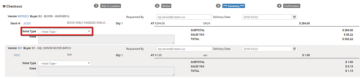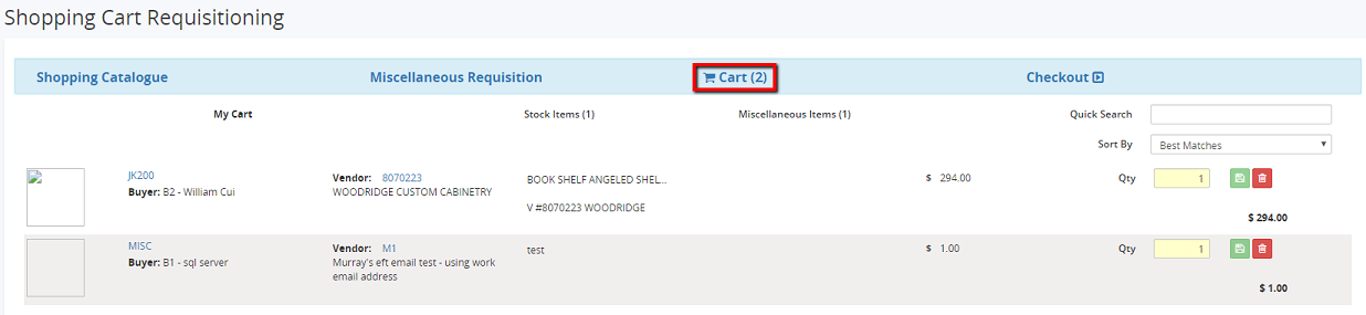 When all the items have been reviewed, the next step is to checkout and complete the requisition.