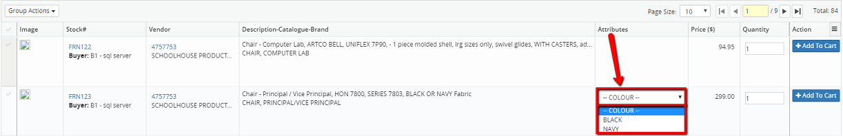 5. For items showing a drop-down menu in the Attributes column, click on the drop-down menu to select attributes of a particular item (colour, fabric etc.)