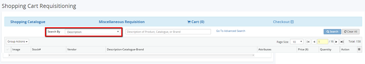 2. Click on the Search By drop-down menu and select Description or Stock Number.
