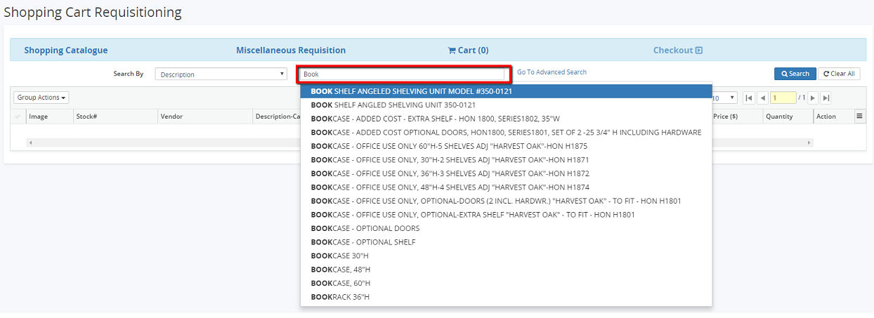 3. Type part of the description or stock number in the field to the right of the Search By drop-down menu.