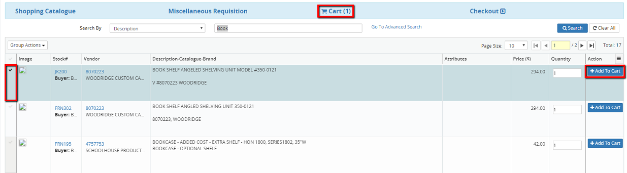 7. Check the corresponding selection box beside the item(s) and click Add to Cart for item to be added to the shopping cart.