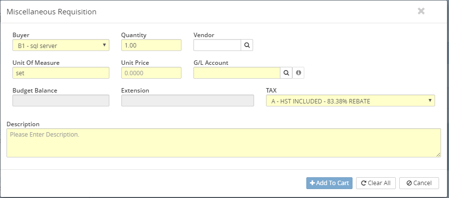 11. In the Miscellaneous Requisition dialog box, click on the Buyer drop-down menu to select an option.