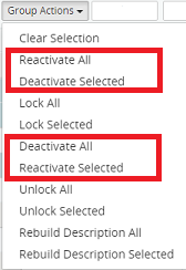 5. Click on the Group Actions drop-down menu and select one of the following: Reactivate All, Deactivate Selected, Deactivate All or Reactivate Selected.