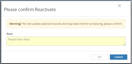 7. Click on the OK button to complete the process or click on the Cancel button to cancel the Activate or Deactivate process.