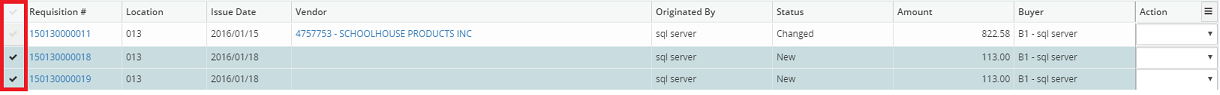 5. Select as many or as few requisitions from the results displayed in the grid, by clicking the corresponding check mark beside each requisition or click the check mark at the top of the grid to select all requisitions.