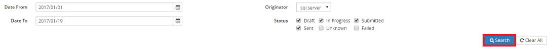 4. If applicable, in the Status section, select or deselect any of the following selection boxes: Draft, In Progress, Submitted, Sent, Unknown, and/or Failed.