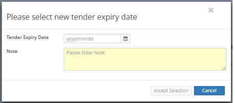 8. Click on the Accept Selection button or click on the Cancel button to cancel the new tender expiry date process.