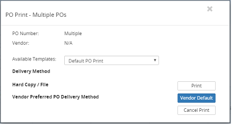 Note: Click on the Cancel Print button to cancel the PO Print process.