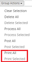7. Click on the Group Actions drop-down menu and select one of the following: Print All or Print Selected.