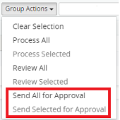 8. Click on the Group Actions drop-down menu and select one of the following: Send All for Approval or Send Selected for Approval.