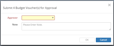 9. In the Submit Budget Voucher(s) for Approval dialog box, click on the Approver drop-down menu to select an option.