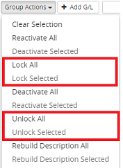 4. Click on the Group Actions drop-down menu and select one of the following: Lock All, Lock Selected, Unlock All or Unlock Selected.