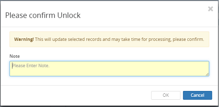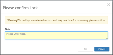 6. Click on the OK button to complete the process or click on the Cancel button to cancel the Lock or Unlock process.