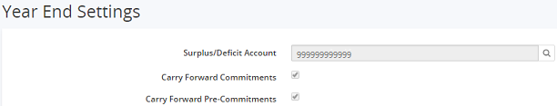 If the Carry Forward Commitments selection box is selected, the year end process will allow for the outstanding purchase orders in the old year to be carried forward to the next year.
