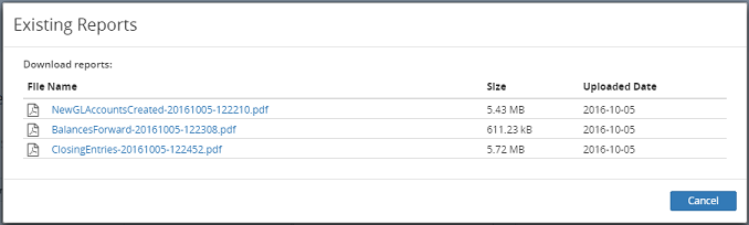 3. In the Existing Reports dialog box, click on the corresponding hyperlink in the File Name column.