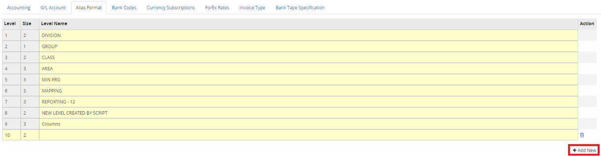 5. In the new line, under the Level column, enter a unique, two (2) digit maximum level.