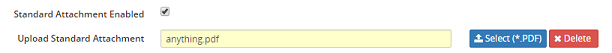Note: If the Standard Attachment Enabled selection box is selected, the Upload Standard Attachment field will become visible and mandatory. Click on the Select button to enter or update the cover page or click on the Delete button to remove a cover page selection.