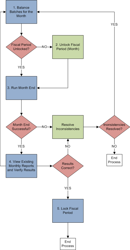 Below is a work flow demonstrating the various steps to complete the Month End process: