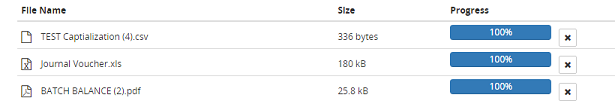 3. Selected files will display below with the File Name, Size and Progress. click on the x button to remove an unwanted file.