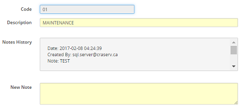 Note: Notes entered in this field will be saved and may be viewed in the Notes History section and are read-only.