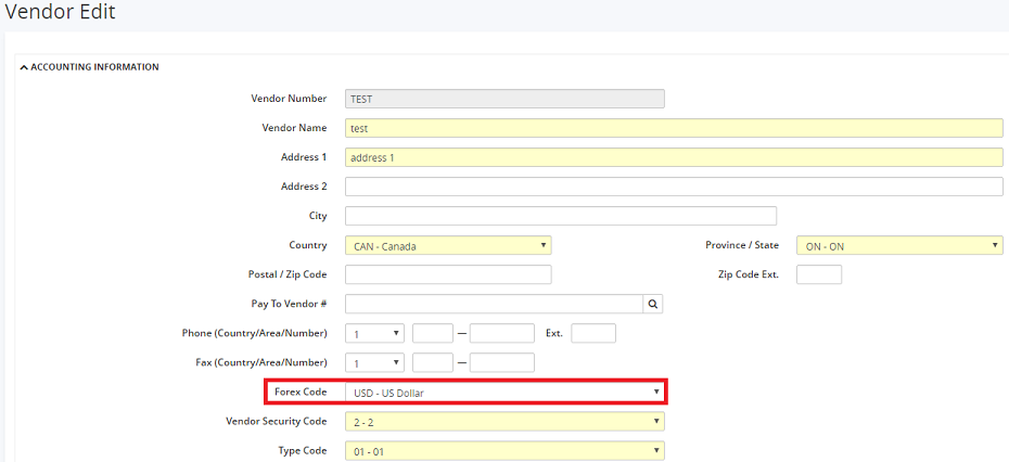 34. Define Vendors manually or through import; make sure foreign vendors are associated with proper foreign currencies: