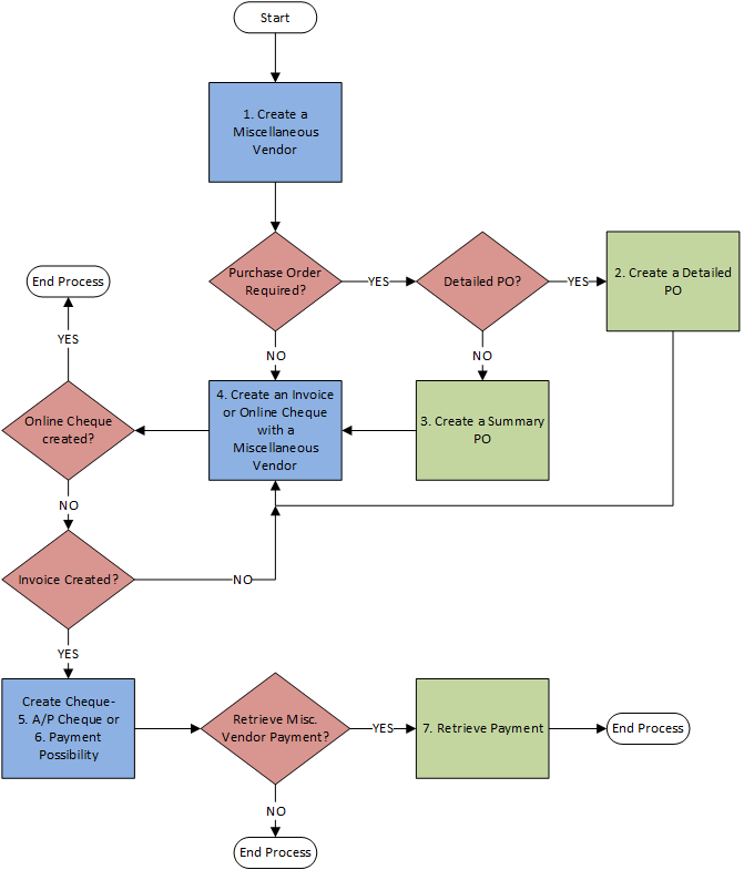 Below is a work flow demonstrating the various steps to complete the Miscellaneous Vendor process: