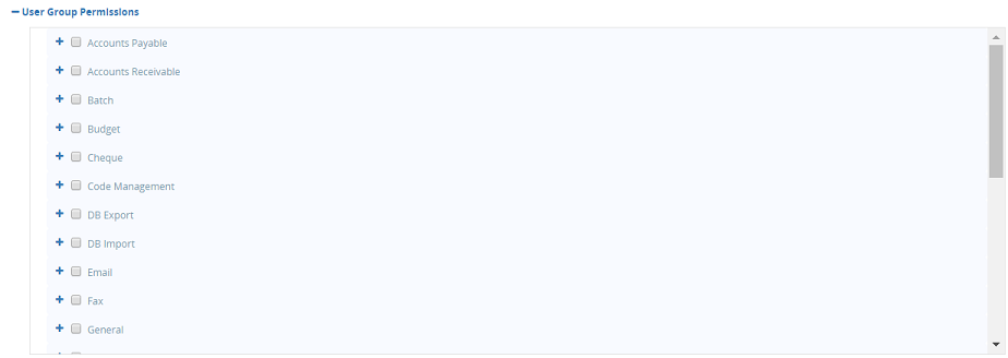 8. If applicable, click on the Plus icon beside the User Group Permissions section to display further search criteria information.