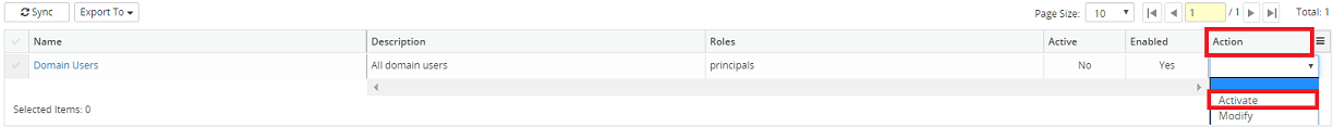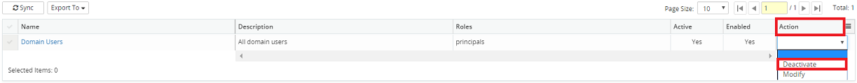 Note: Activate action will be available when Active is Yes. Deactivate action will be available when Active is No.