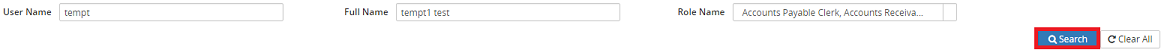 2. If applicable, enter the User Name, Full Name and/or Email and if needed, use the wild card search button.