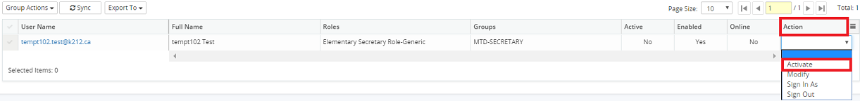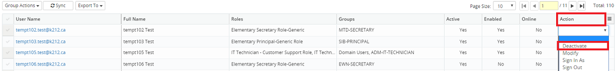 Note: Activate action will be available when Active is Yes. Deactivate action will be available when Active is No.