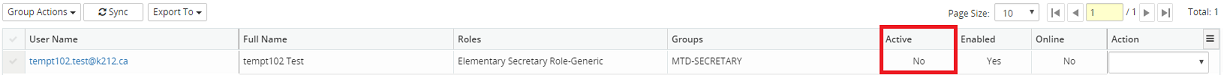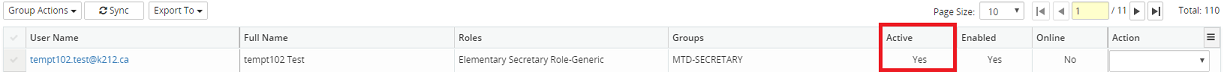 3. In the Active column, the status of the role will change to No if deactivated, and Yes if activated.
