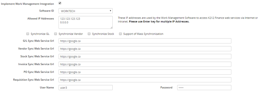 8. If applicable, enter or update any of the following fields: G/L Sync Web Service Url, Vendor Sync Web Service Url, Stock Sync Web Service Url, Invoice Sync Web Service Url, PO Sync Web Service Url and/or Requisition Sync Web Service Url