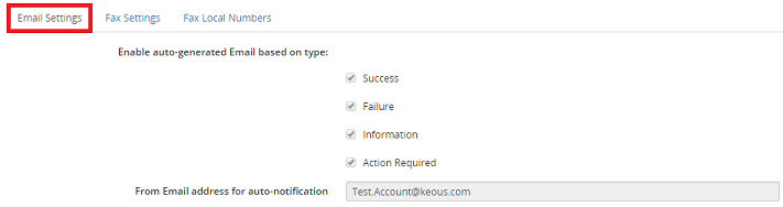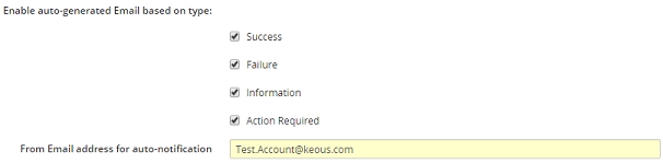 3. If applicable, in the Enable auto-generate Email based type section, select or deselect any of the following selection boxes: Success, Failure, Information and/or Action Required.