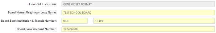 4. If applicable, enter or update the Board Bank Institution & Transit Number.