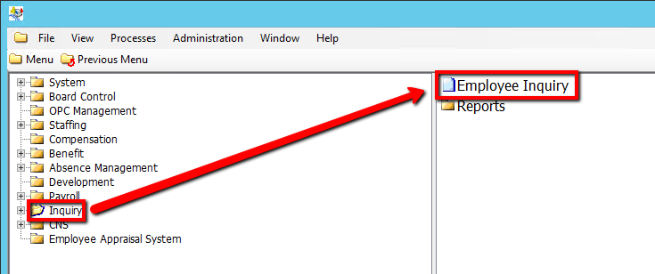 2. Click on Employee Inquiry