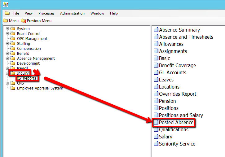 This screen produces the Employee Posted Absence Report; which contains a list of Employees that match the user’s Selection Criteria.