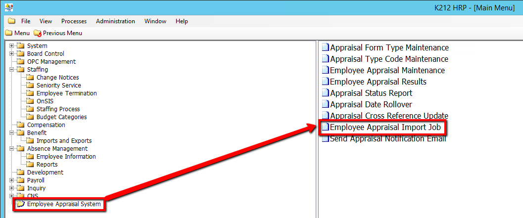 Use the following steps to Run an Employee Appraisal Import Job