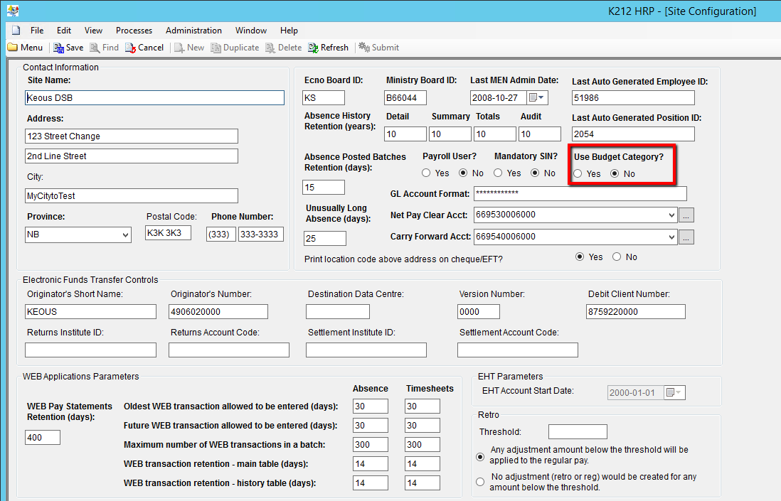 4. Select a Use Budget Category value (i.e Yes= Enable, No=Disable)