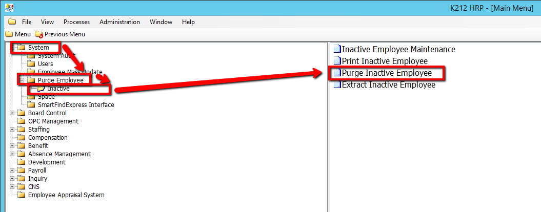 This screen will produce a report of all inactive employees and optionally delete those records.