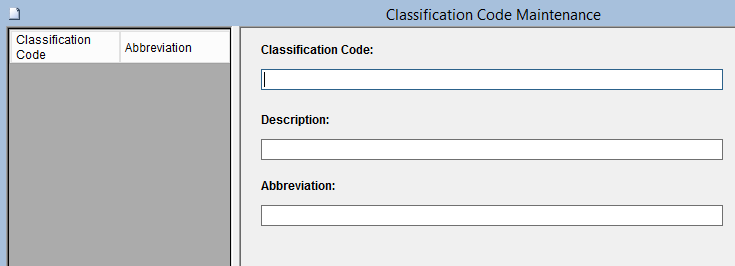 3. Click on Classification Code Maintenance