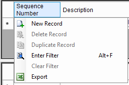 14. Right-click the grey grid below the Sequence Number column and Select New Record (If applicable)