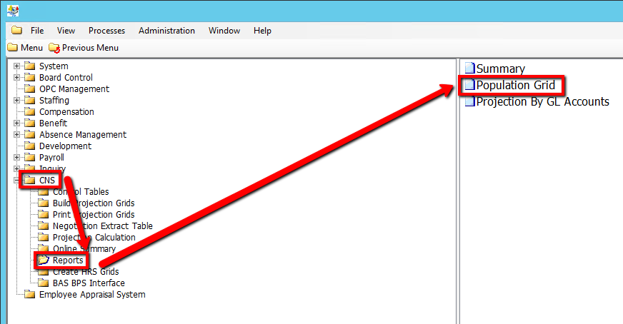 Use the following steps to run a Salary Population Grid Report: