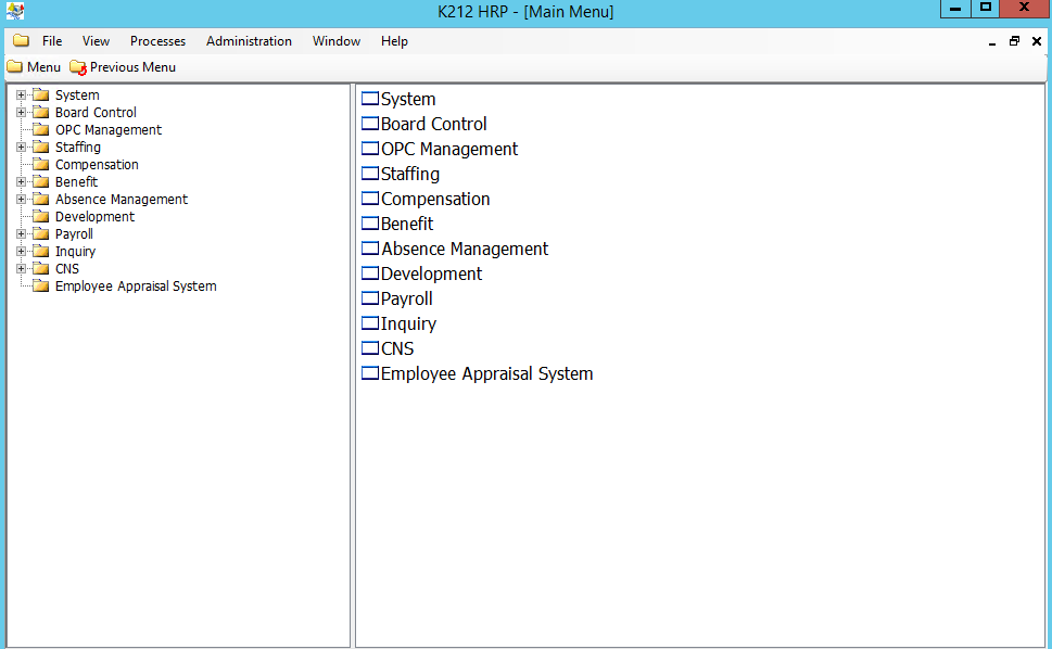 Guides containing specific information for individual menu options within K212 HRP (such as the Staffing ID screen) are available through the Help option in the Menu Bar (at the top of the K212 HRP window).