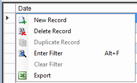 4. Right-click the grey grid below the Date column and Select New Record