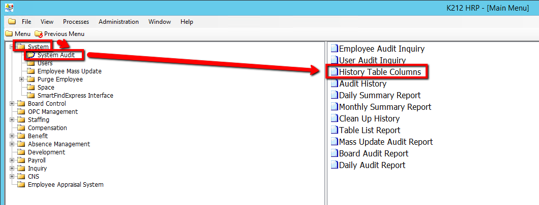 3. Click on History Table Columns