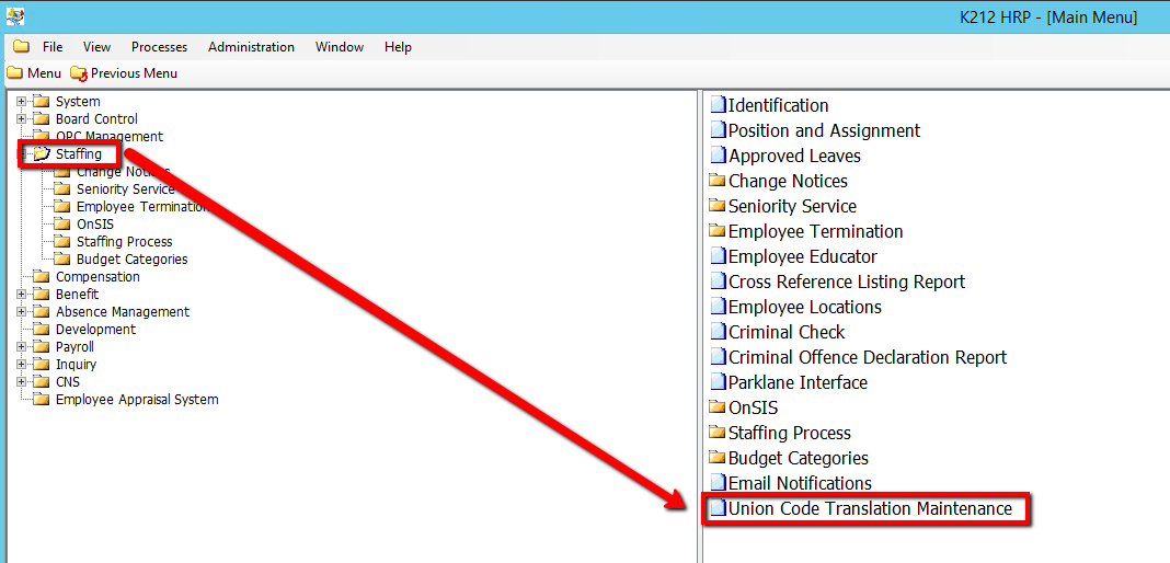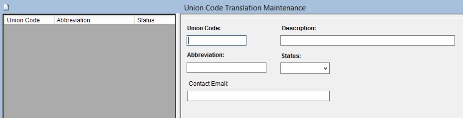 5. Select a current Union Code to modify or Select New at the top of the menu screen to add a new code